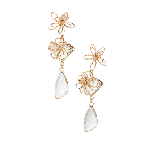 Modern Museum Golden Silk Flower Pendant Crystal Earrings