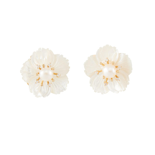Modern Museum Flower Pearl Earrings