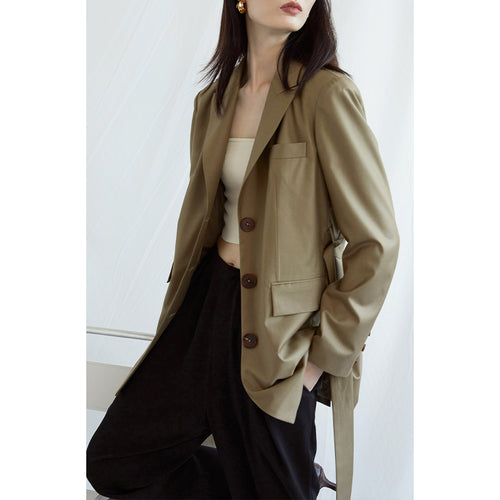 NewYogO French Big Pockets Mid-Length Women Autumn Jacket